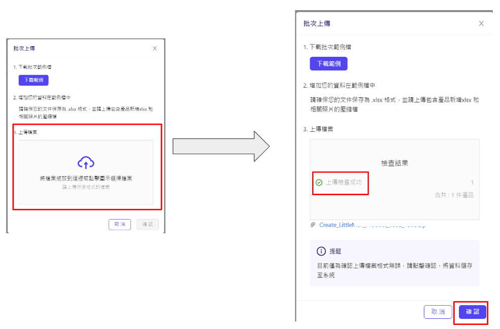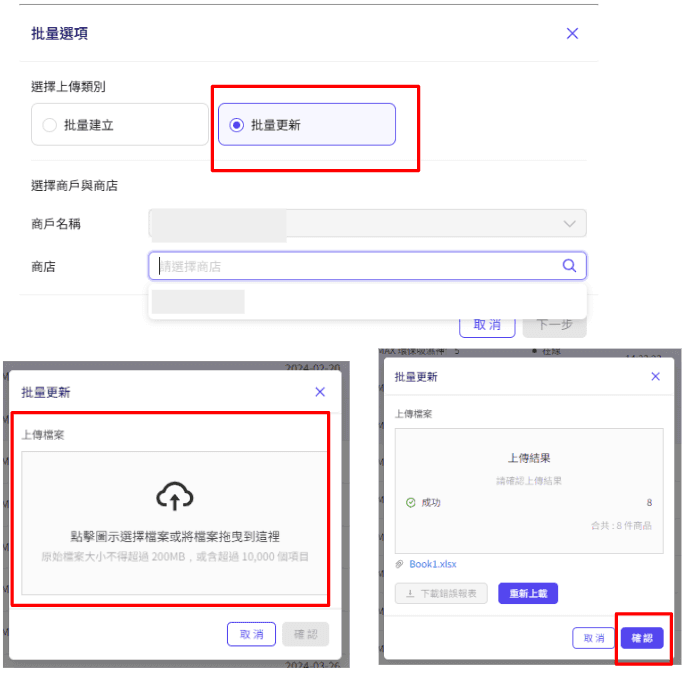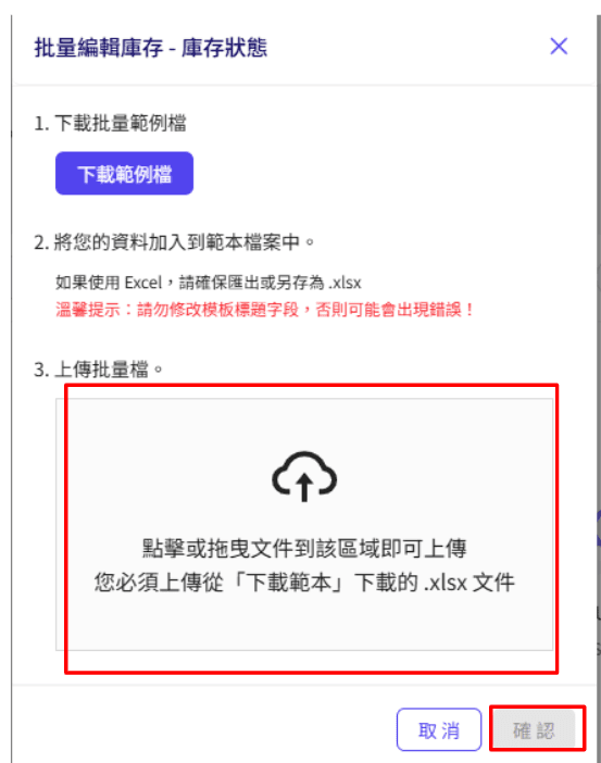 點擊「批量上傳/更新」按鈕進行批次上傳。