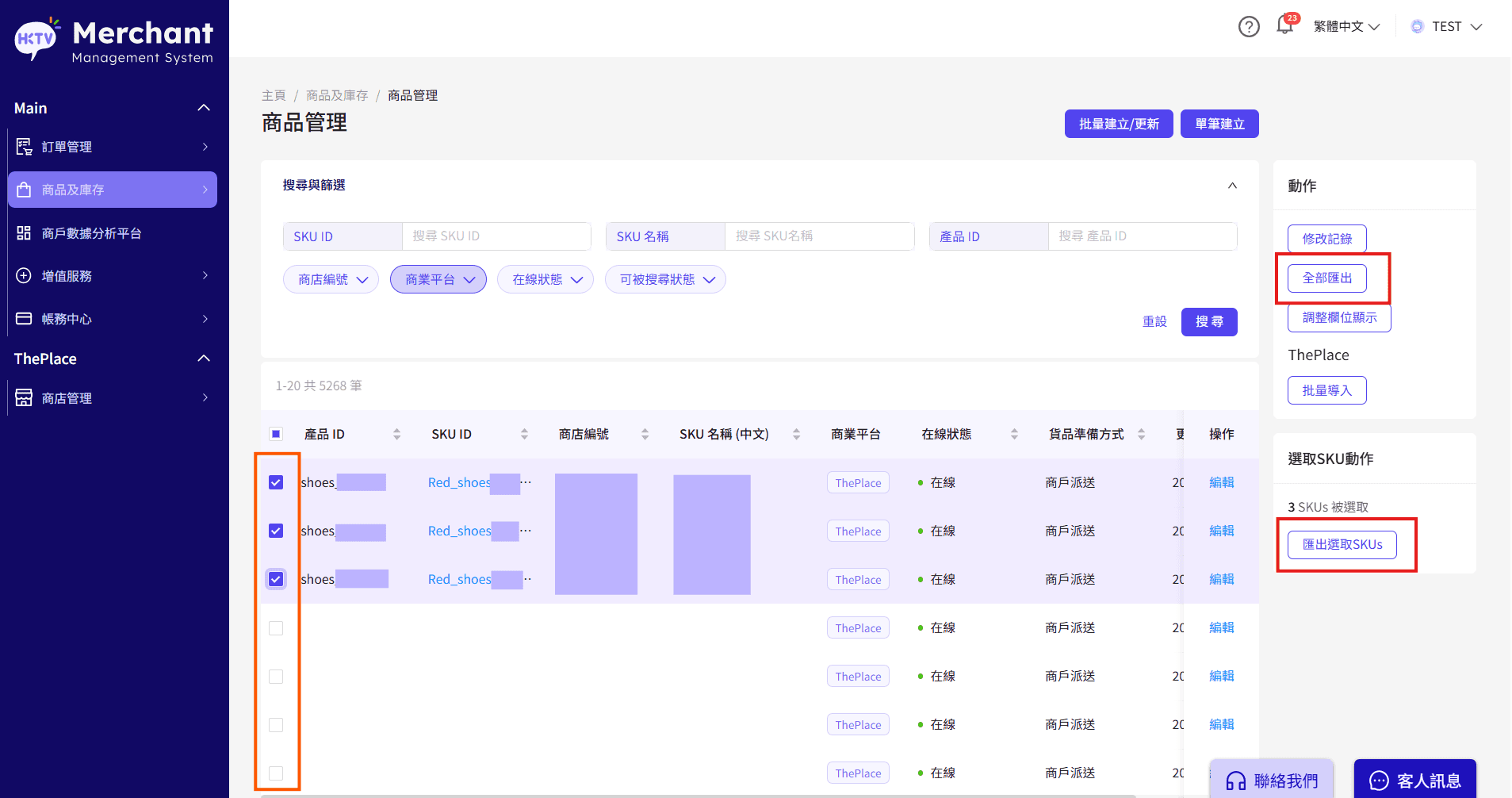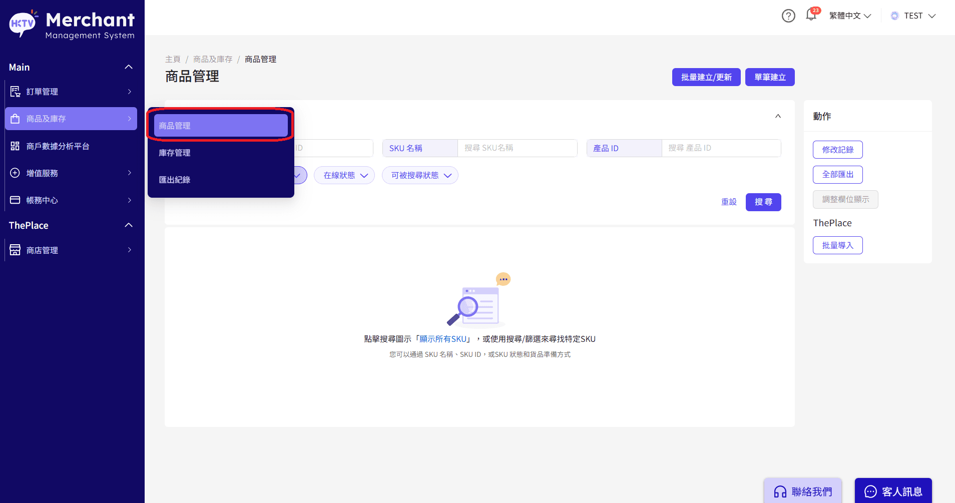 *詳情請參閱商品規格(Variants)SKU名稱會顯示在「ThePlace」平台