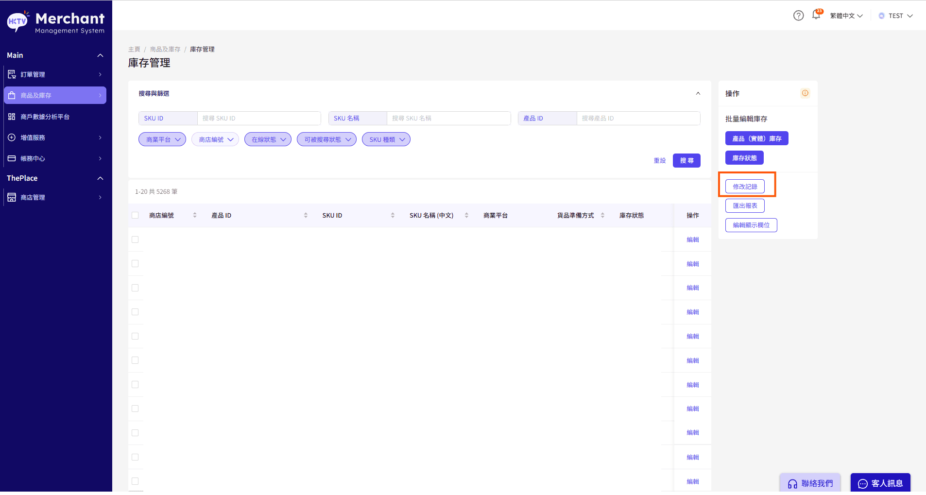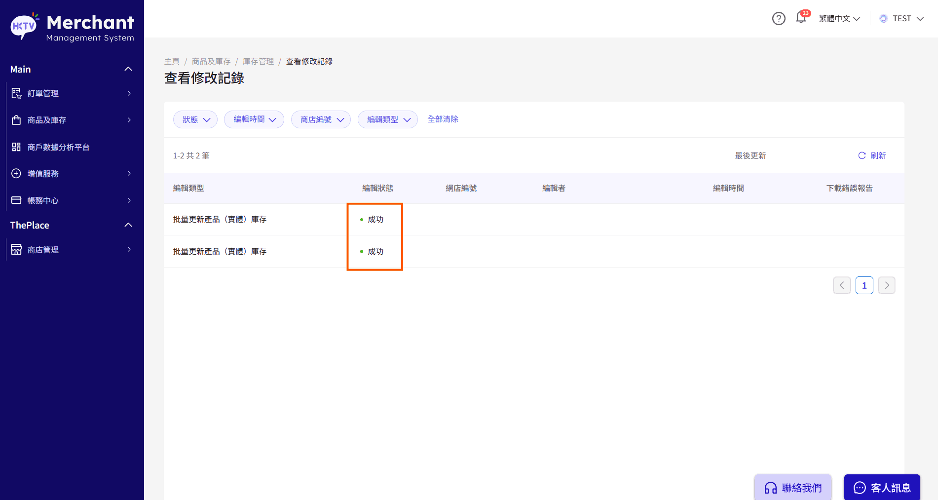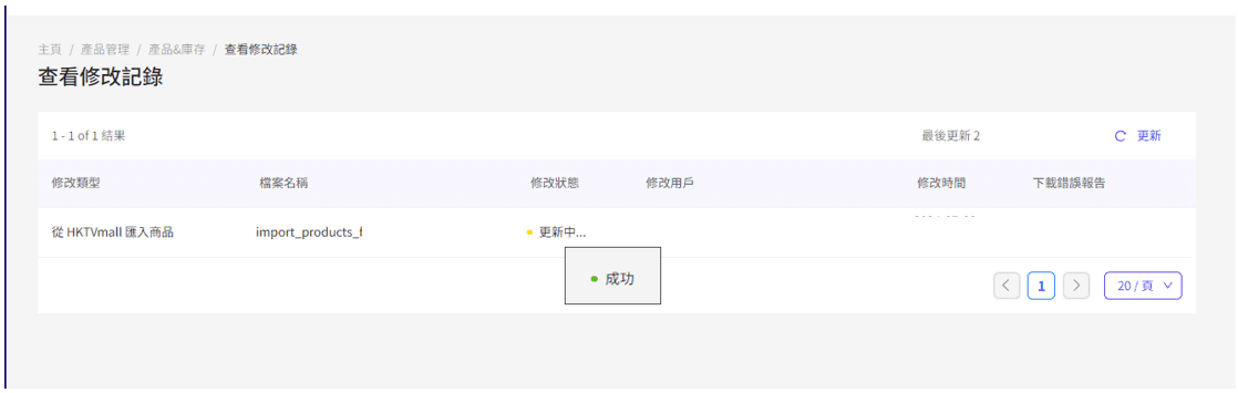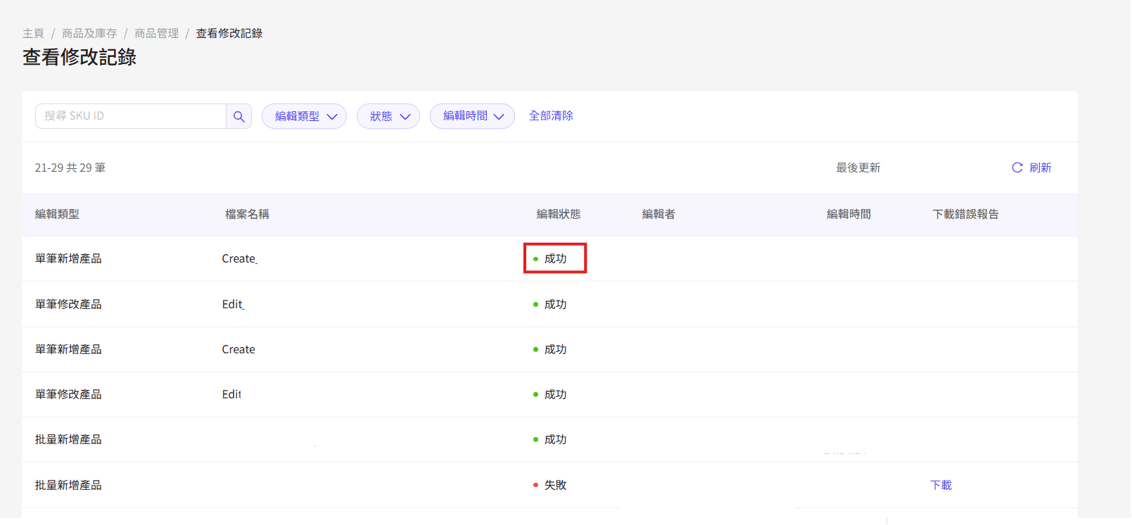 1. 點擊「修改記錄」查看商品是否創建/ 編輯成功