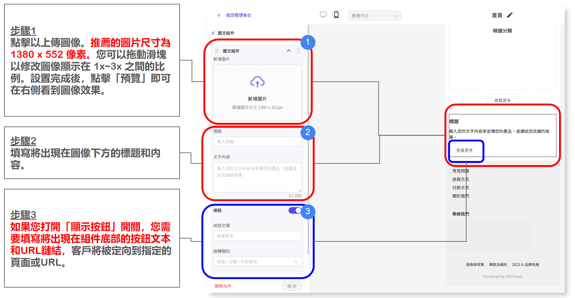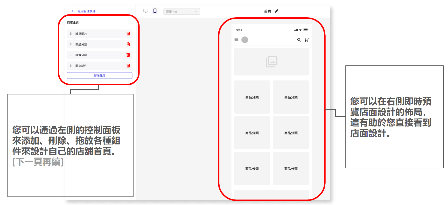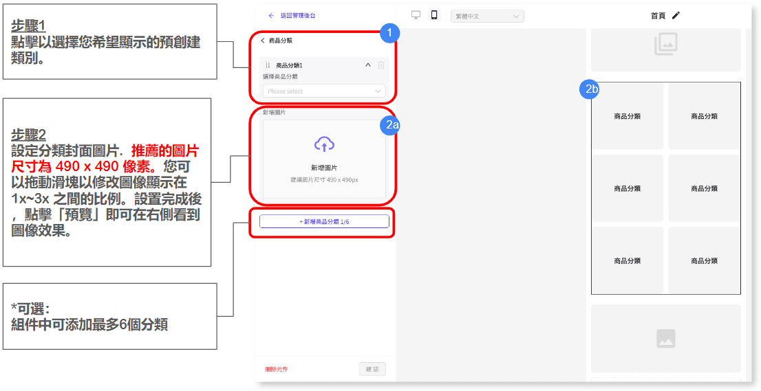 商戶亦可進一步使用與品牌或商店相關的字詞自訂網店的獨有網址(例如:www.example.com),自訂網域設置如下