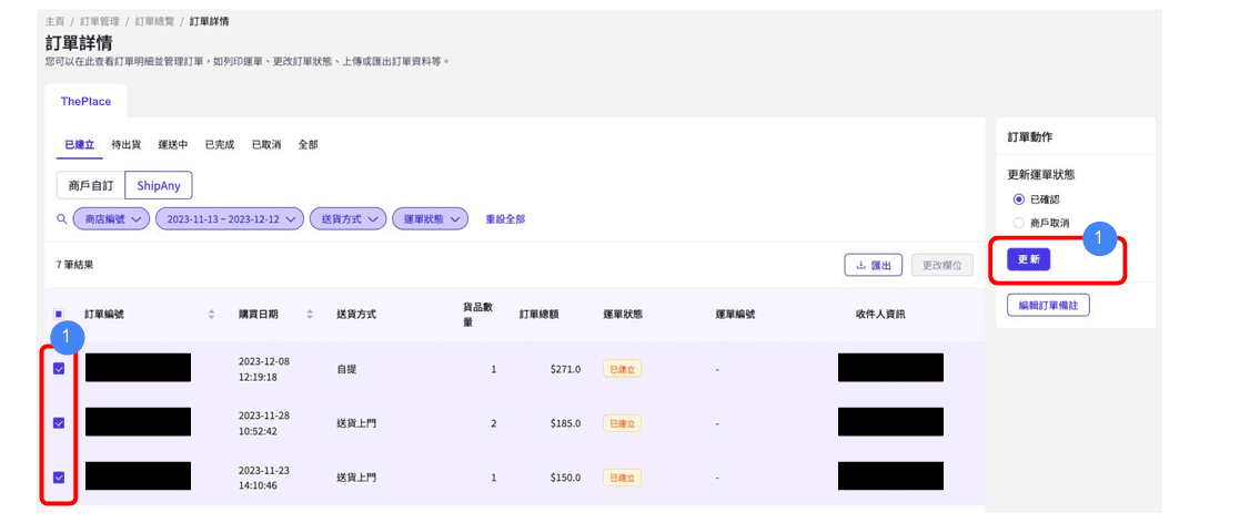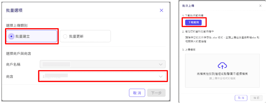 1. 點選 「批量建立」,選擇商店編號 [1000xxxxS]