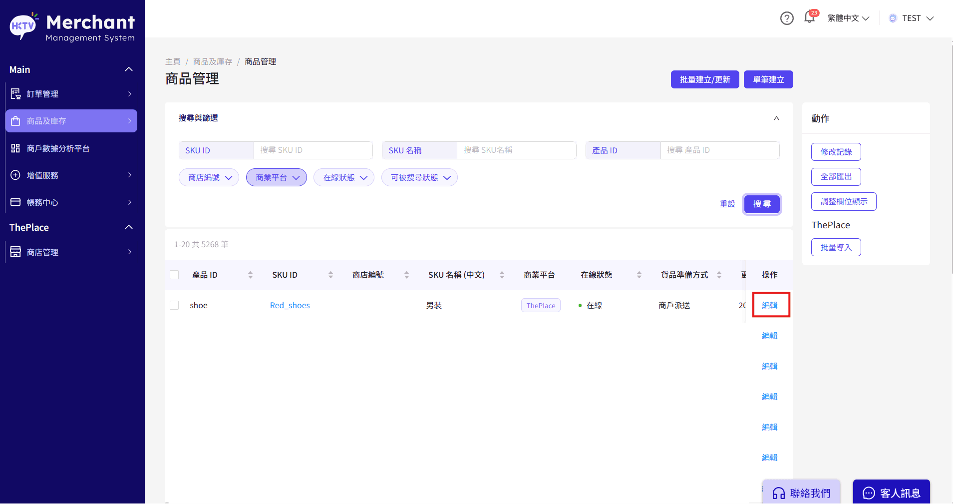 1. 可修改商品信息 (SKU名稱、原價、售價、產品描述等)