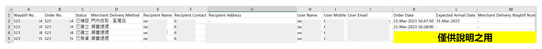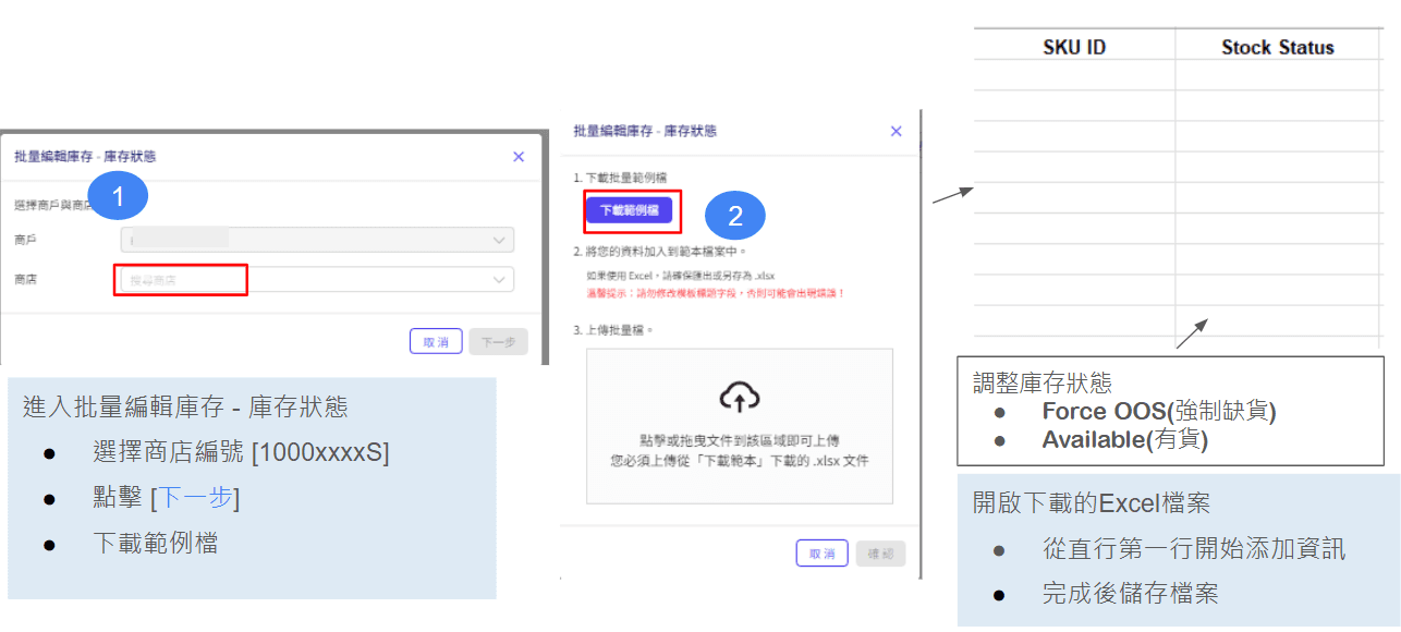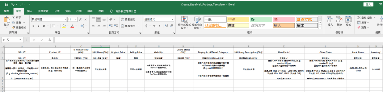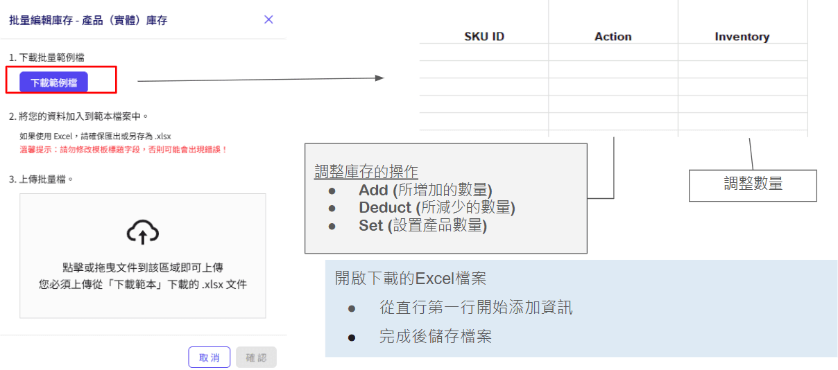 從橫行第四行開始添加產品資訊 (每次上傳上限為200MB)