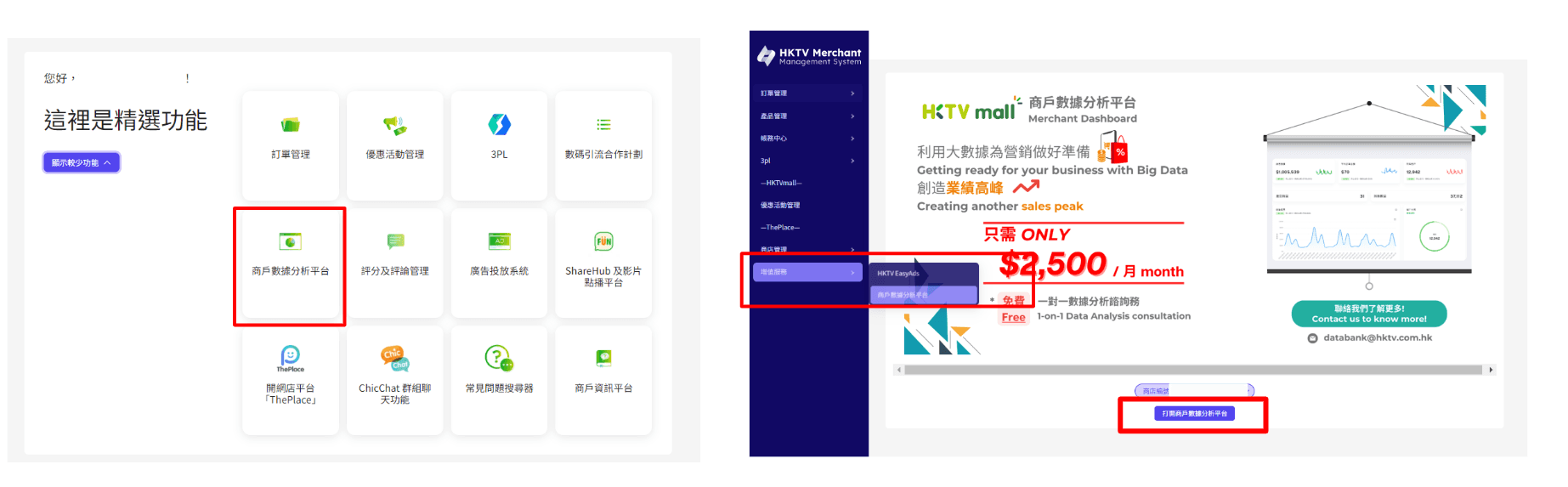 點選「商戶數據分析平台」或 點選 「增值服務」>「商戶數據分析平台」