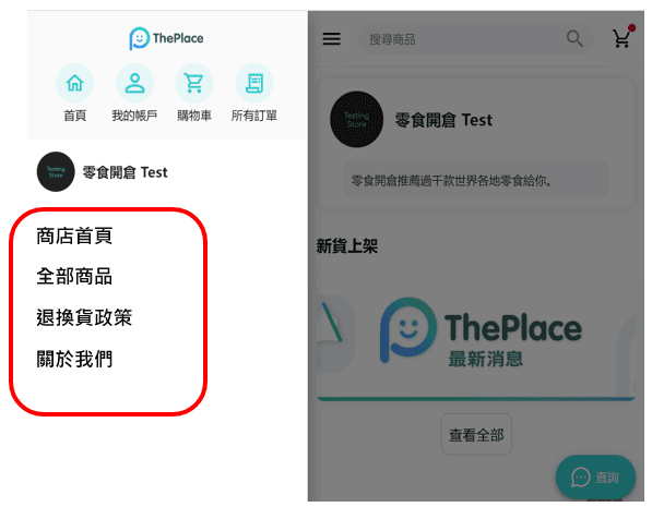 「ThePlace」商戶擁有預設的免費商店網址(https://www.theplace.shop/[store_code]),商戶可按需要調整商店編號部分的網址 ( 如 https://www.theplace.shop/abc)