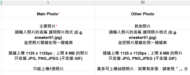 於 *主要照片和其他照片欄,請輸入照片名稱 (輸入格式必須為xx.jpg/png/jpeg)