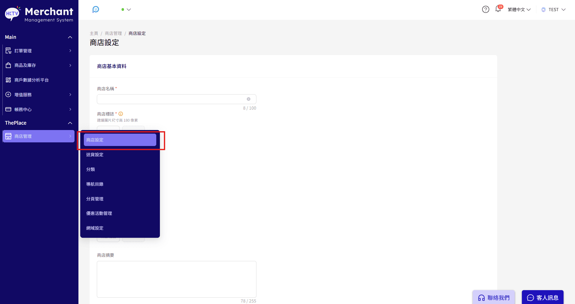 *經「新業務申請」至「ThePlace」的HKTV商戶,注意需使用「MERCHANT_ADMIN」角色來操作網域設定頁面