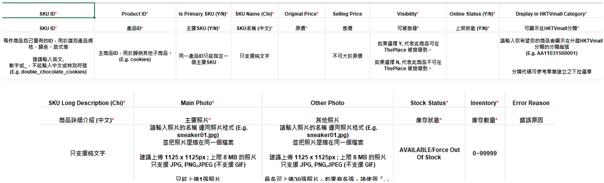 HKTVmall分類:需要為每個 SKU 選擇 HKTVmall 類別,最多可選擇3個HKTVmall分類