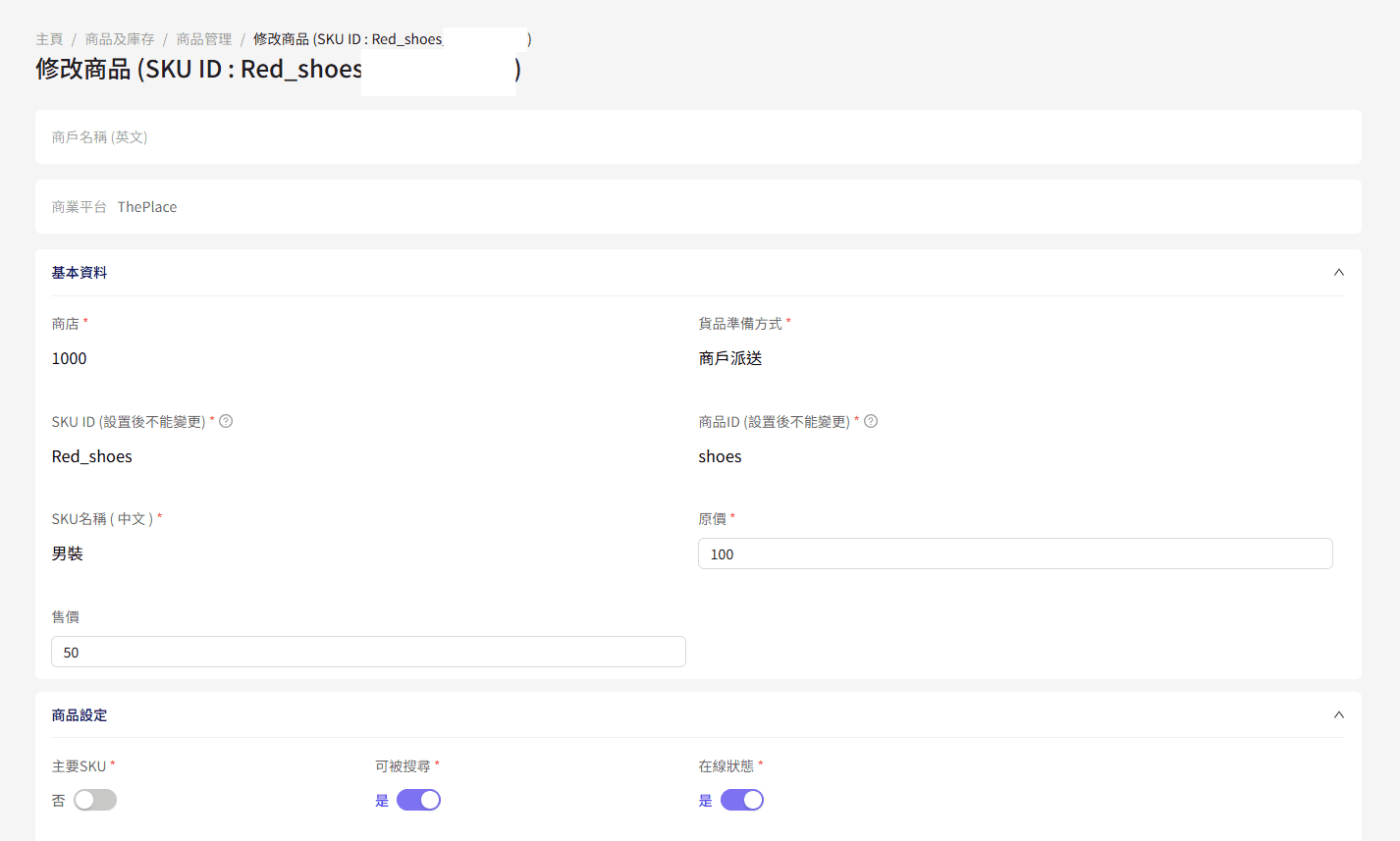 2. 修改商品設定 (可被搜尋、在線狀態等)